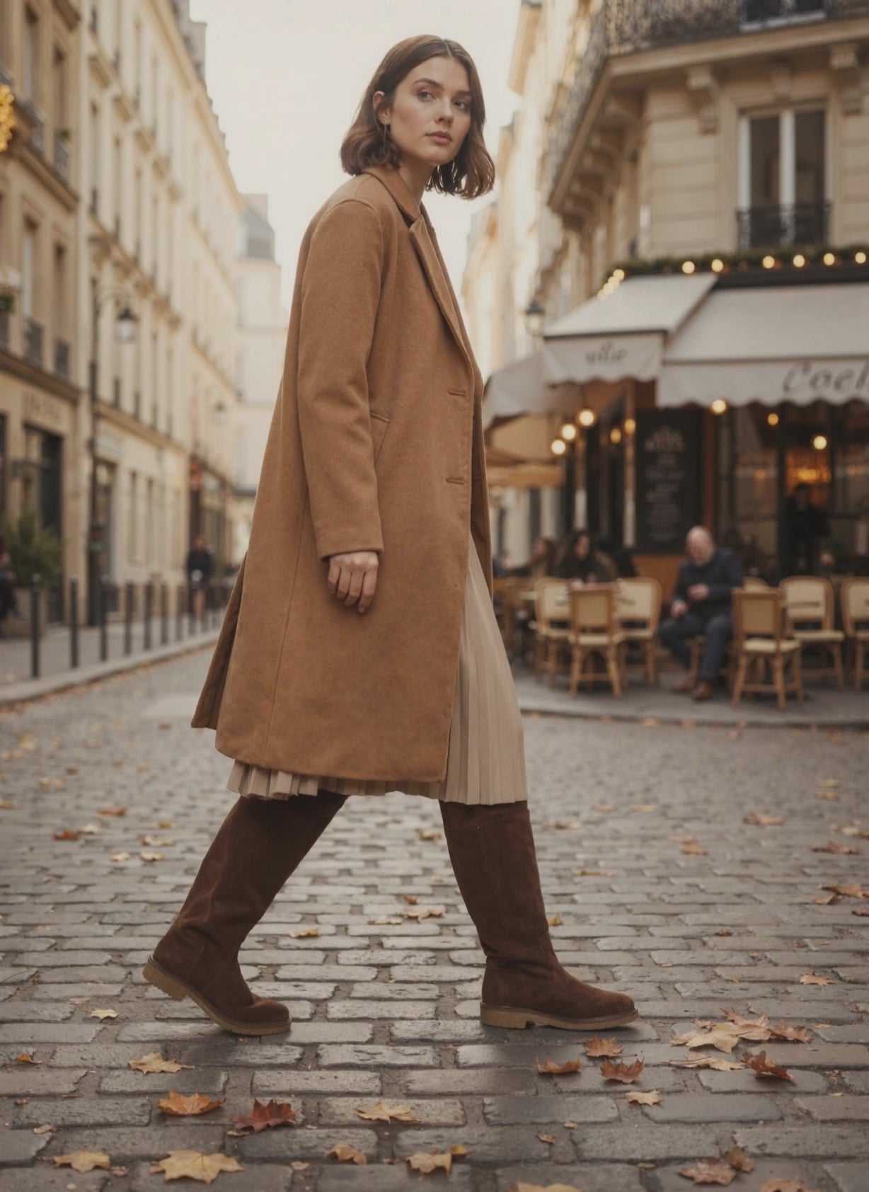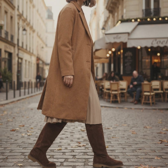 Lovely long boot in suede, with warm wool lining. And a zipper on the inside which makes it easy to get into the boot. And with a soft genuine raw rubber sole.